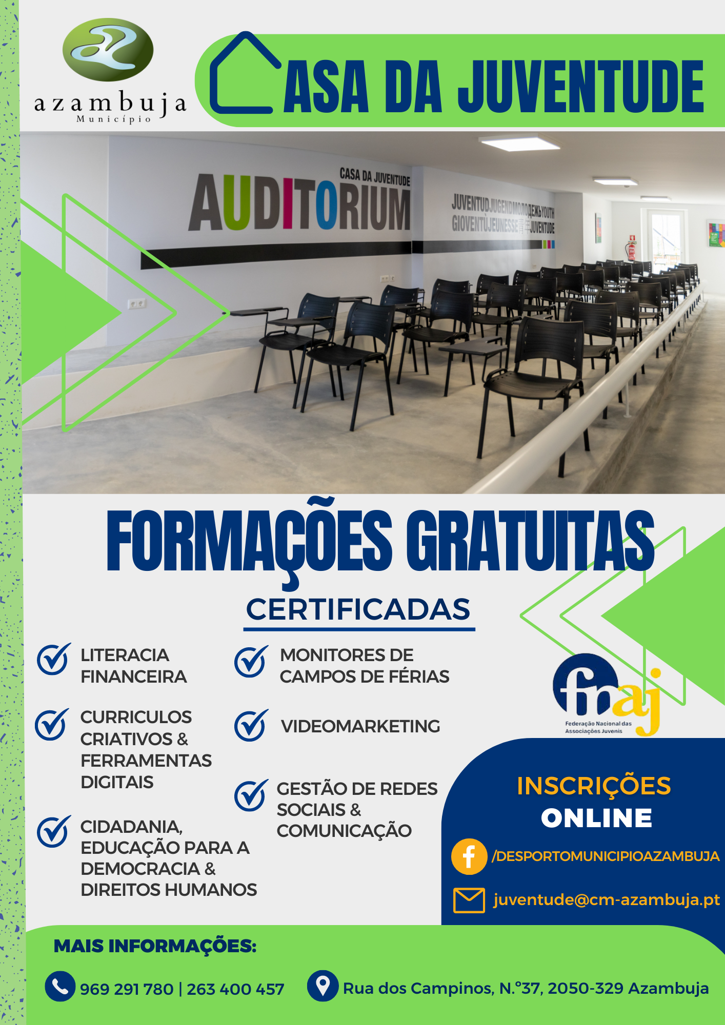 O Município de Azambuja está a promover uma série de formações gratuitas e certificadas na Casa da Juventude, em parceria com a Federação Nacional das Associações Juvenis (FNAJ). Esta iniciativa Continuar a ler