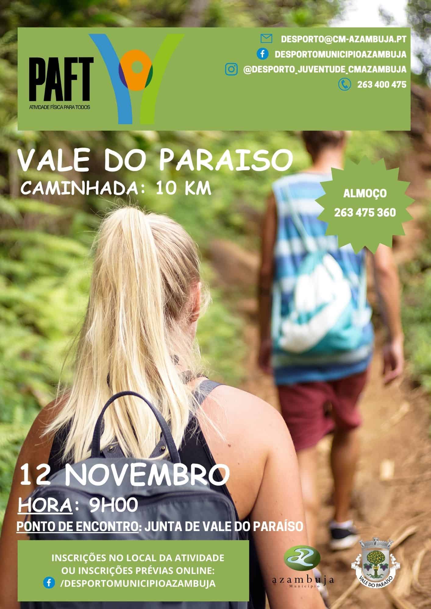 A Freguesia de Vale do Paraíso recebe no domingo, dia 12 de novembro de 2023, mais uma atividade PAFT-Programa de Atividade Física para Todos, promovida pela Câmara Municipal de Azambuja em parceria com a Junta de Freguesia de Vale do Paraíso.