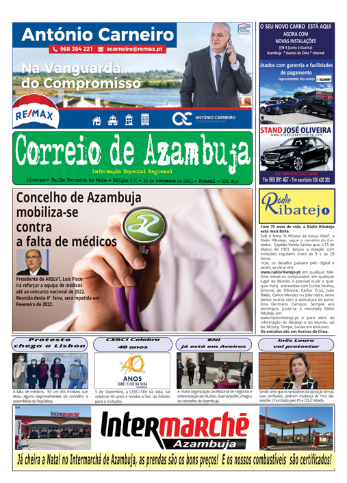 Estamos em distribuição de mais uma edição do Correio de Azambuja. Não perca este mês, a “speed edition” com os temas mais quentes no concelho: Cidadãos pela Saúde, vão tentando Continuar a ler