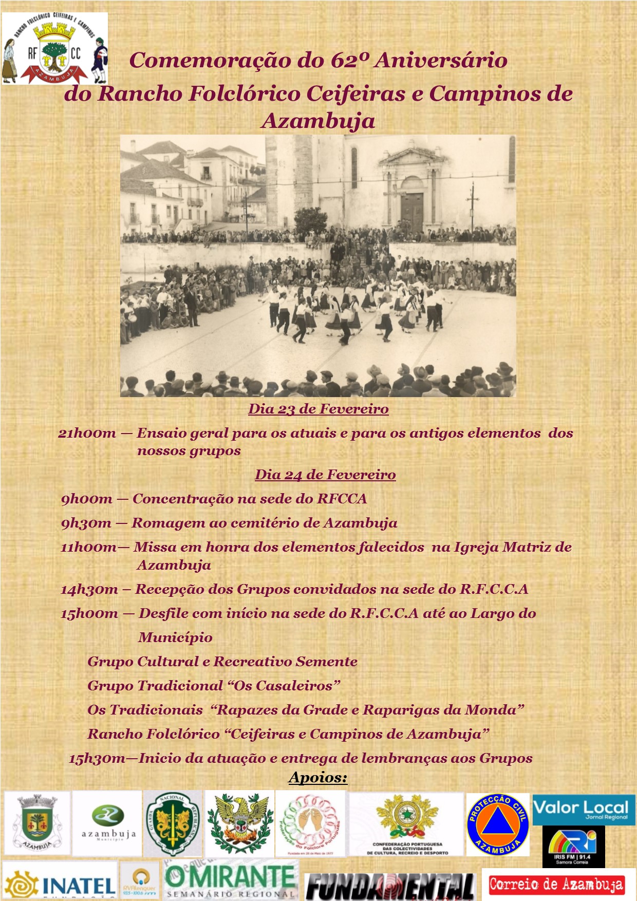 O Rancho Folclórico Ceifeiras e Campinos de Azambuja (RFCCA) está a comemorar o seu 62º aniversário durante este fim-de-semana, dias 23 e 24. A efeméride começa com a realização de Continuar a ler