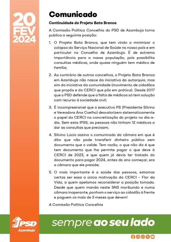 O PSD de Azambuja, acabou de emitir um comunicado em que dá a conhecer a sua opinião em relação à troca de comunicados entre a CERCI- Flor da Vida e Continuar a ler