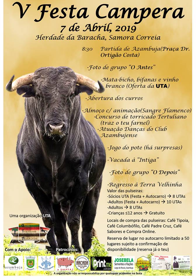 A União Tertúlias de Azambuja (UTA) vai realizar no próximo domingo, dia 07 de abril, a quinta edição da sua Festa Campera. O evento decorrerá na Herdade da Baracha, em Continuar a ler