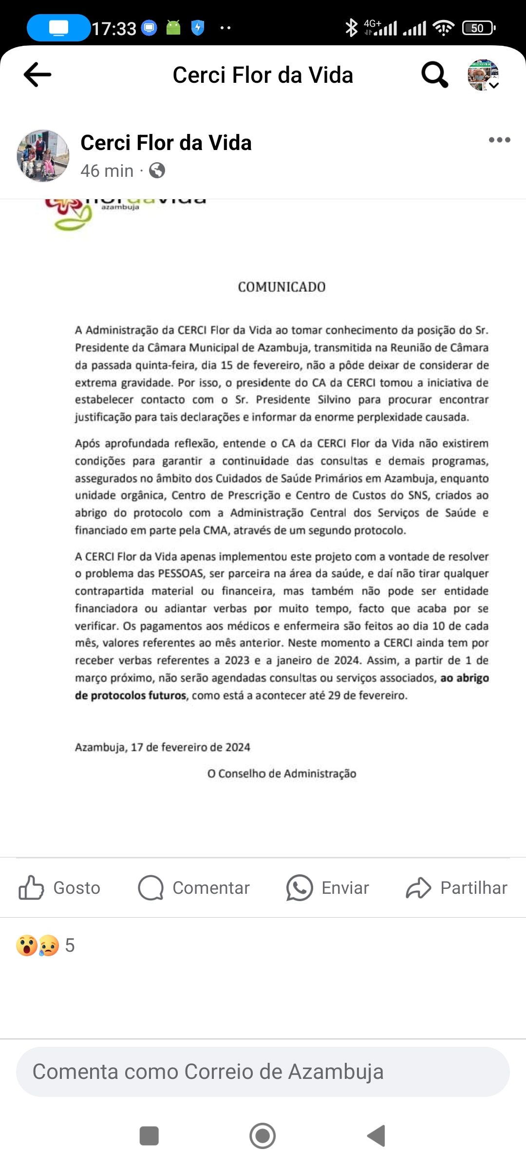 Projeto Bata Branca, termina em Azambuja devido a declarações do presidente da Câmara e à falta de pagamento do Estado